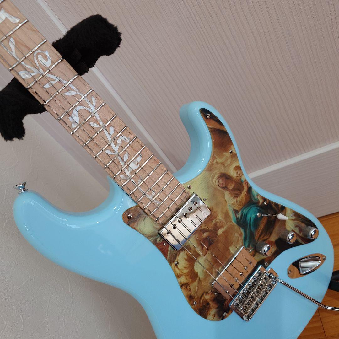 日本製のエピフォン・レスポール カスタムフジゲン製でギブソンヘッド、ラッカートップのLQです。メイプルトップ、マホガニーバックで指板はローズウッドです。ネックはディープジョイントになっています。2008年くらいに購入したものです。ネックは特に問題なしと思います。フレットもほんの少し溝になっている箇所がありますが厳しめで7割残くらいだと思います。 キズもトグルスイッチ付近にすり傷、バック面にもキズあり。ネック裏にも触ると少し凹んでる箇所あります。その他拭きキズすり傷はあると思ってください。 <改造点有り>ピックアップはフロントがダンカンのAPH-1でリアはディマジオのTONEZONEです。ロッドカバーをギブソンのものに交換。ブリッジはABR1だったのをゴトーのナッシュビルに交換。ポット類をCTSのインチ規格のものに交換。ボディーの穴を少し拡大してます。配線類はちょっとどういう状態だったか覚えてないです…以上のことプラス音出し確認してませんので音が出ない、トーンが効かない等あっても自分でなんとかできる方のみご購入してください。現状でご満足できなくても自己責任でお願いします。ケースは非純正のギブソンのソフトケースです。ケースを段ボールで梱包して発送いたします。実家に置いてあるので発送まで1週間ほどかかる場合があります。11/17追記もともと載っていたピックアップとトラスロッドカバーを見つけたので付属いたします。ピックアップは外してかなり経っているので正常に動作するかは分かりません。おまけと考えてください。トラスロッドカバーはGIBSONと書いてあるほうがエピフォンの純正で、ギターについてるほうがパーツを購入して取り付けたものです。フロントピックアップをAPH-2としていましたが、APH-1の間違いでした。訂正しました。- ブランド: Epiphone- モデル: Les Paul- カラー: ブラック- 製造国: 日本製- シリアルナンバー: F501〜ご覧いただきありがとうございます。| カテゴリー: | ホビー・楽器・アート>>>ギター>>>エレキギター |